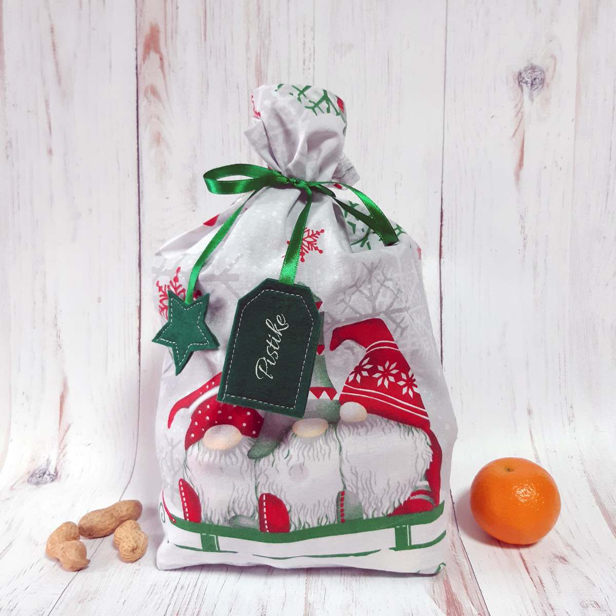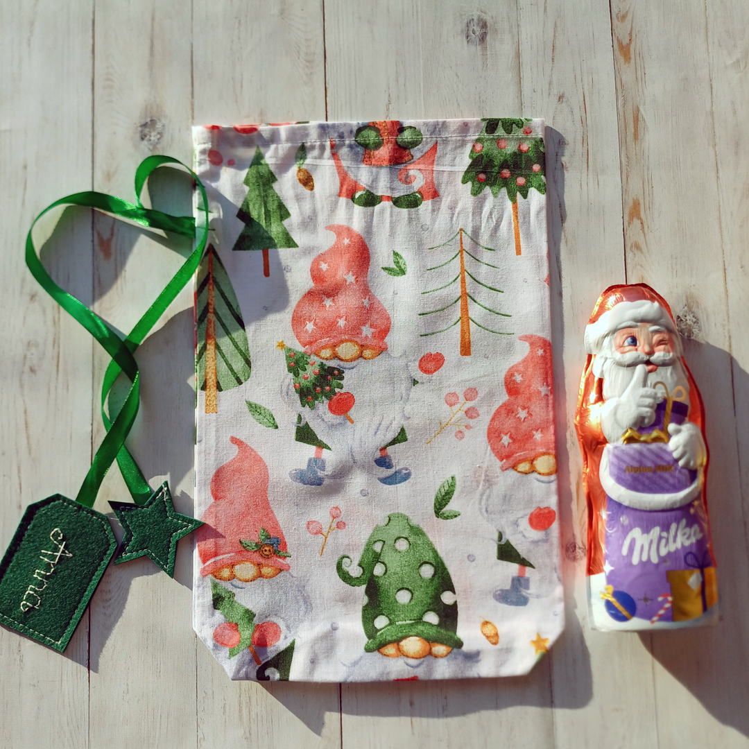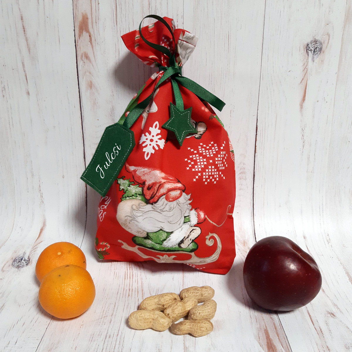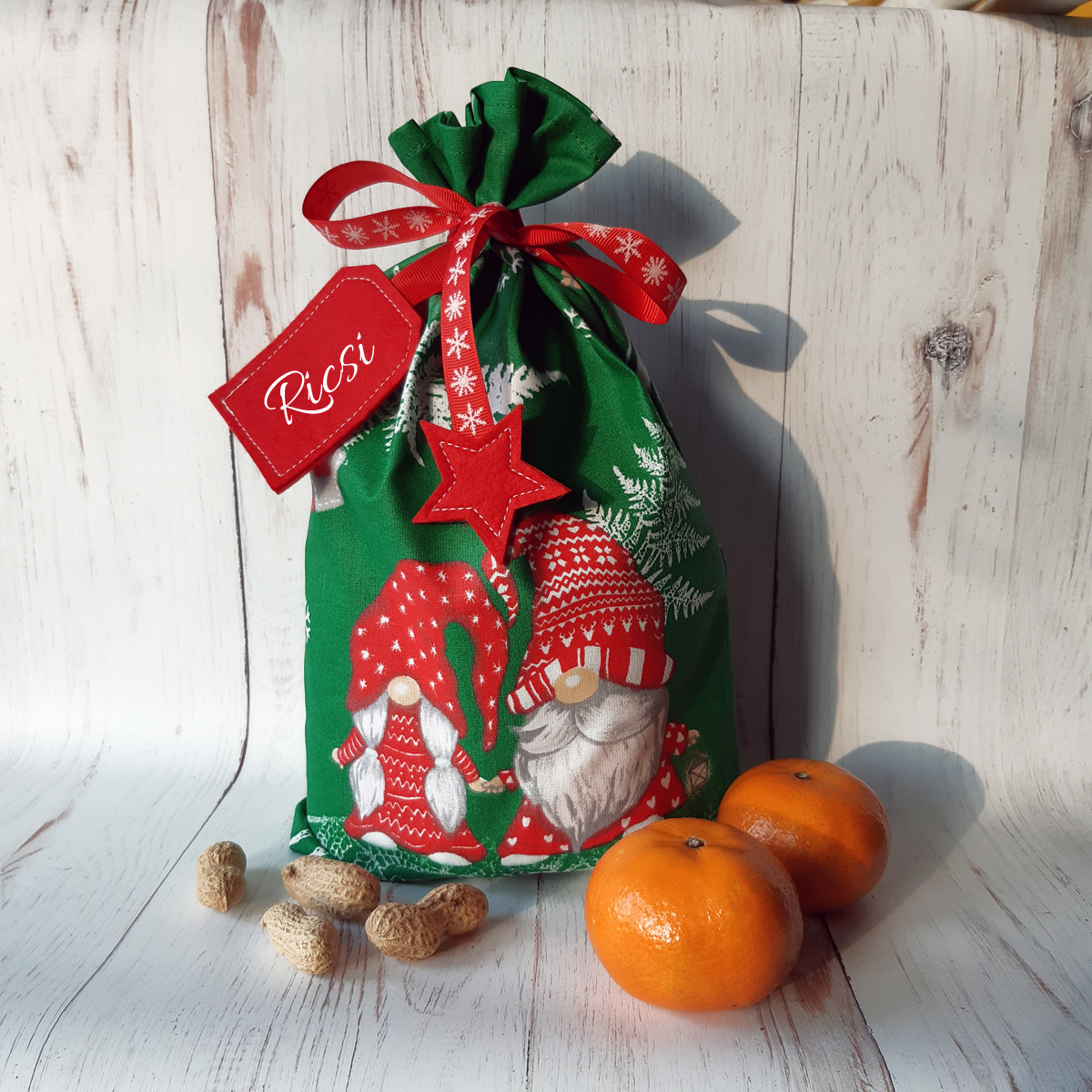 - Zöld alapon piros törpés Mikulás zsák