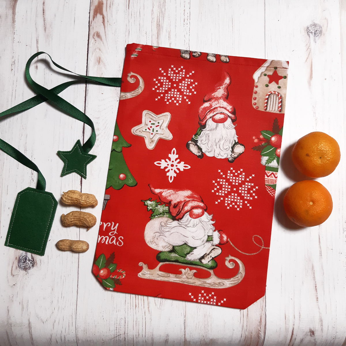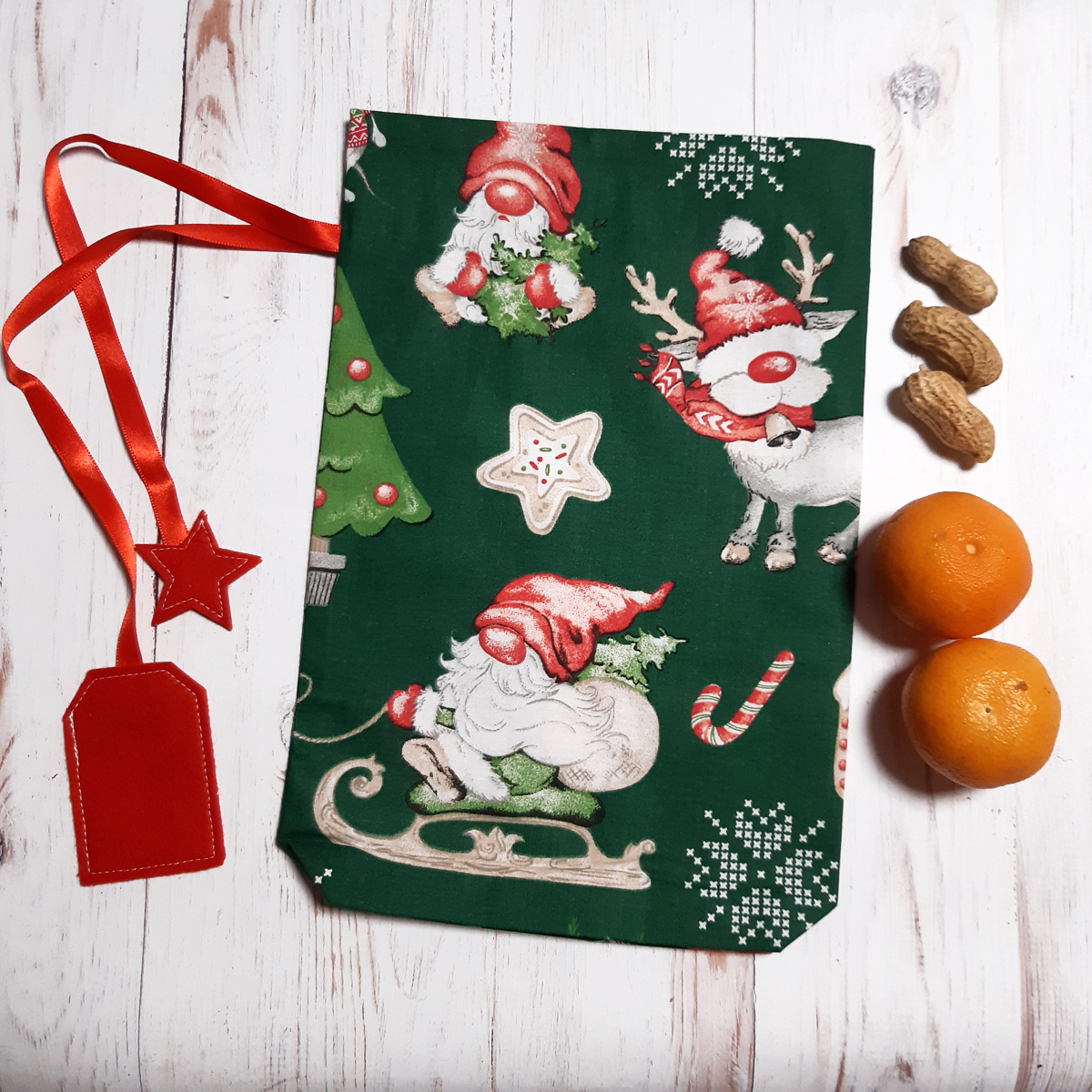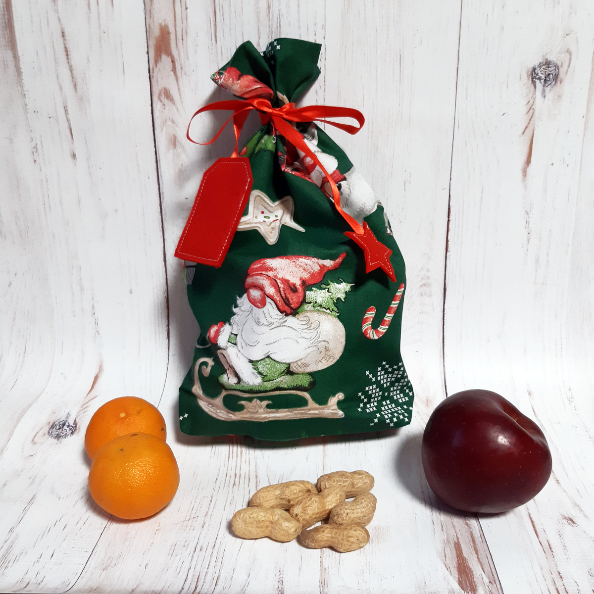 - Zöld alapon piros törpés Mikulás zsák