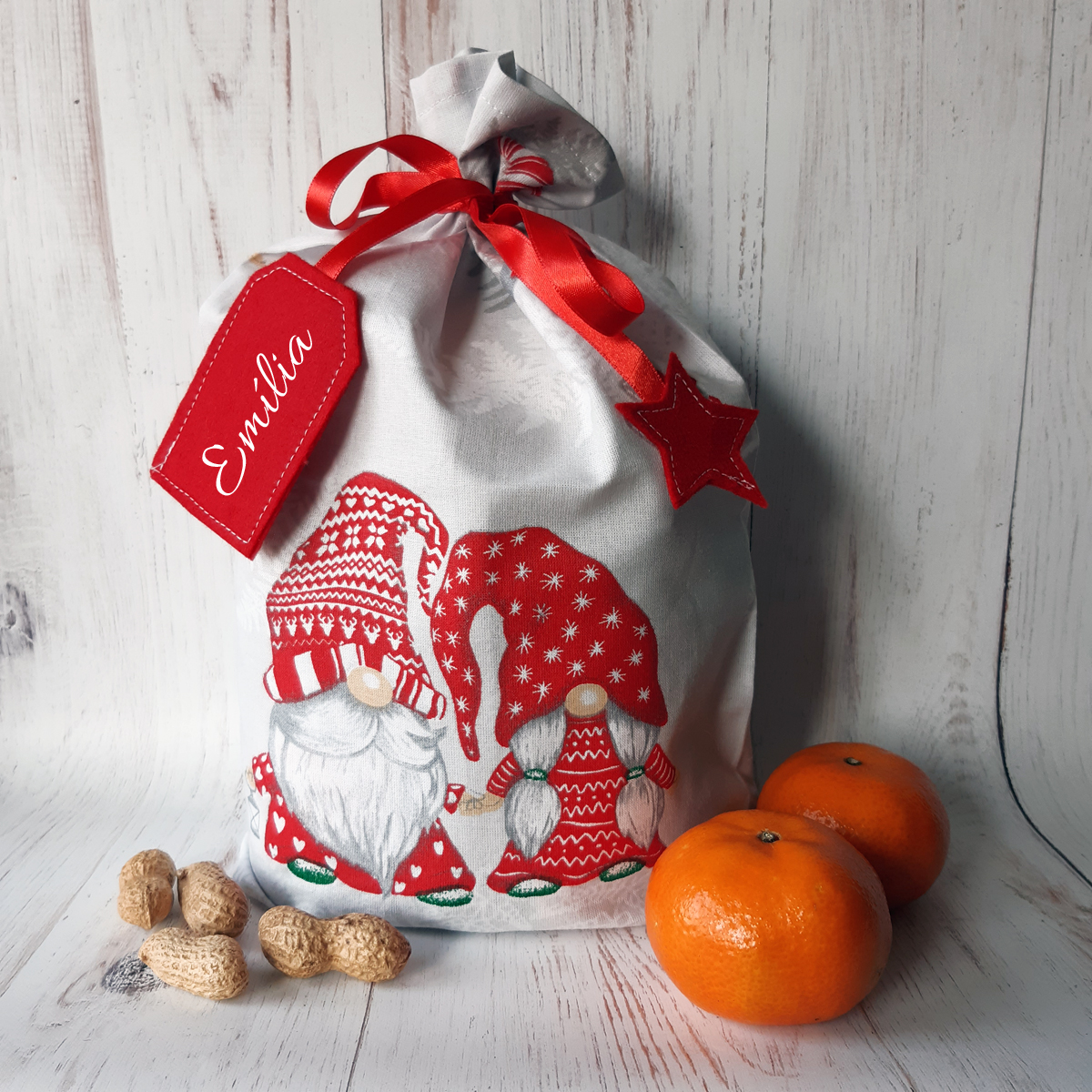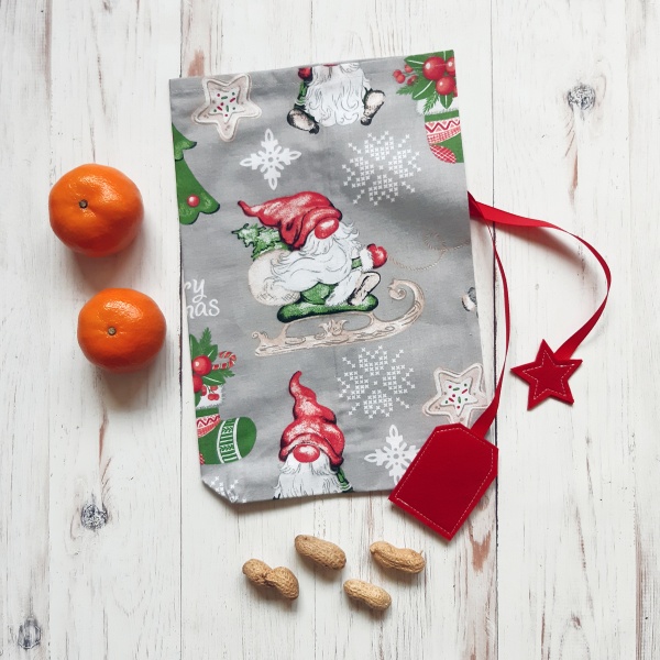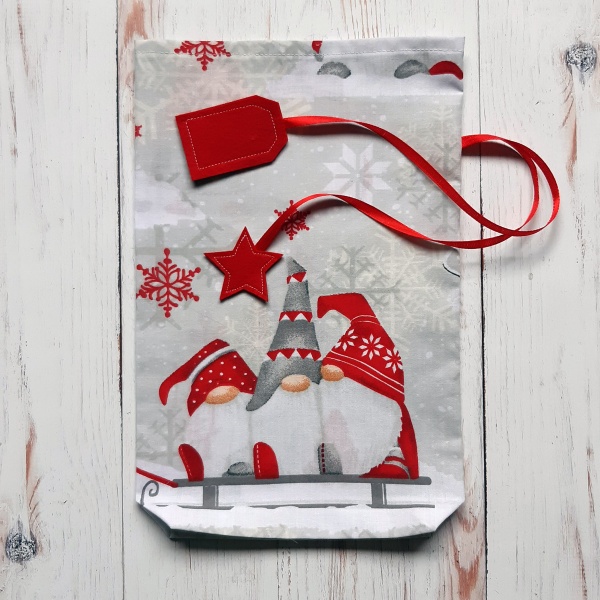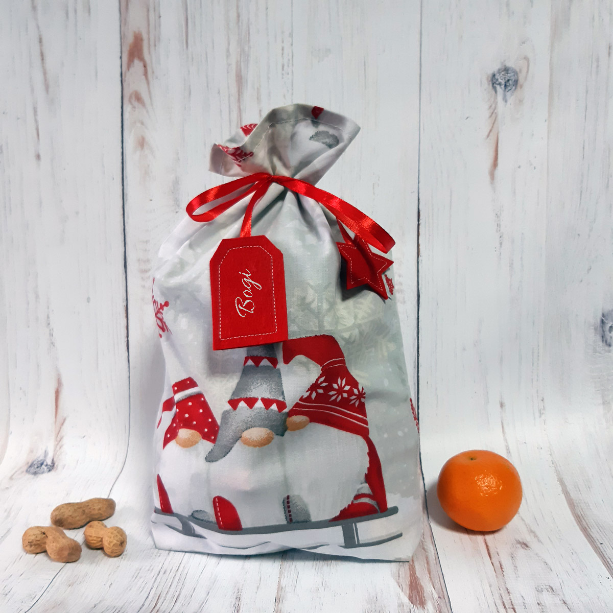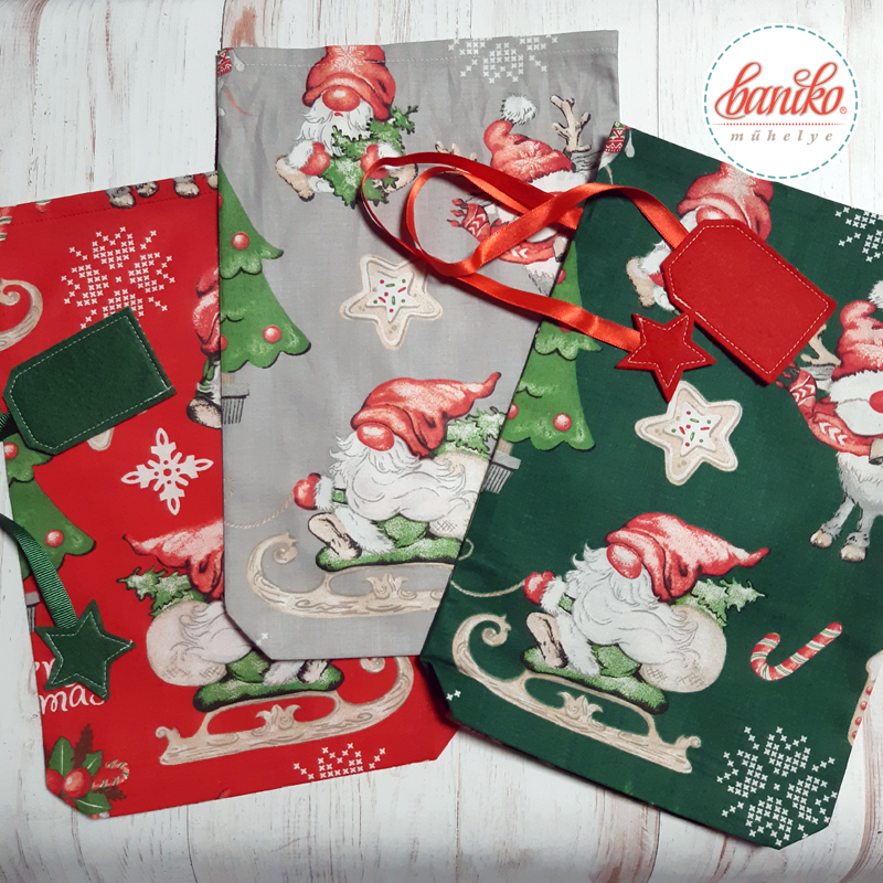 - Fehér alapon piros törpés Mikulás zsák