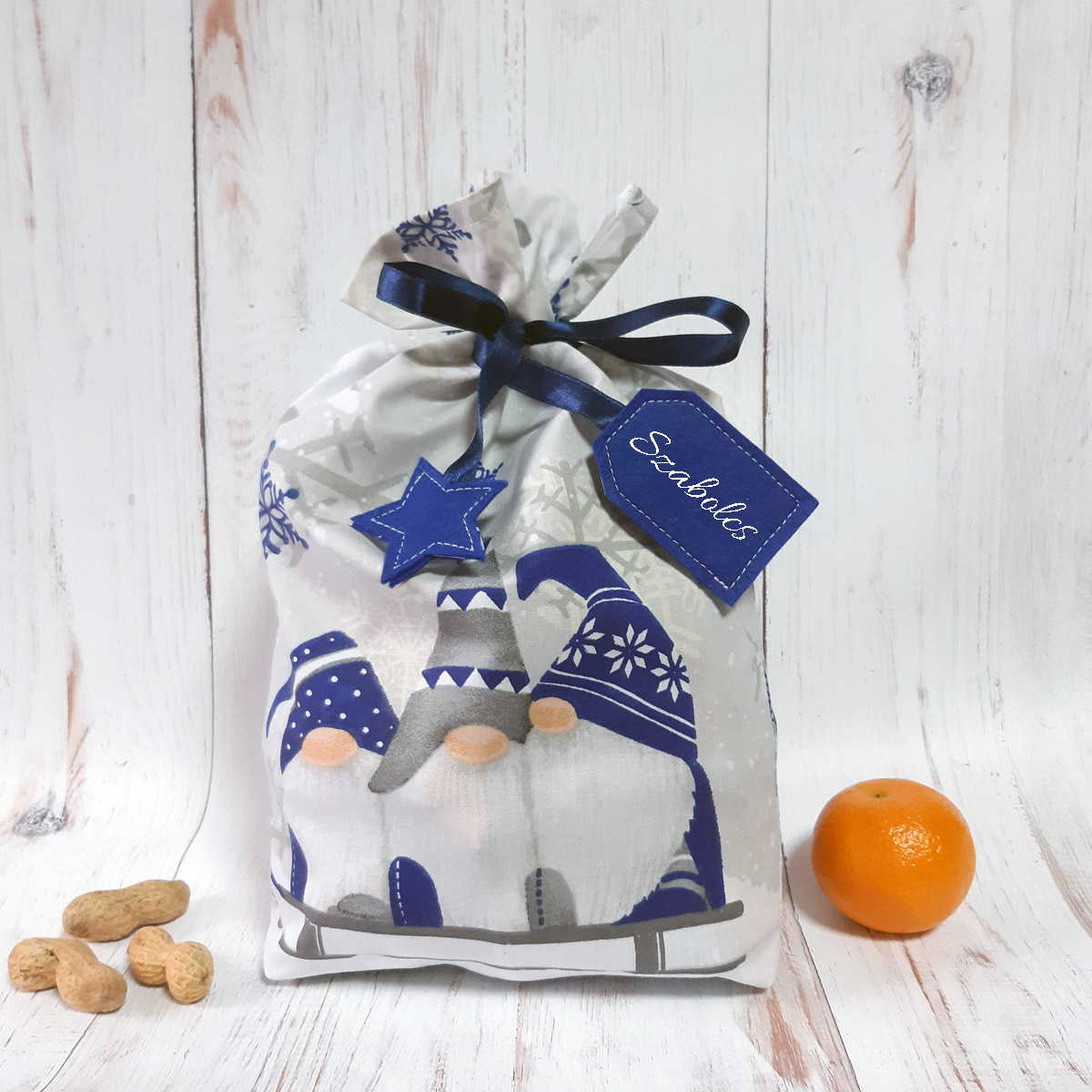 - sötétkék manós Mikulás zsák